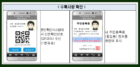 '주민등록증 모바일 확인서비스' 는 실물 주민등록증이 없어도 주민등록증에 수록된 사항인 성명, 주민번호, 주소, 발급기관 등을 표시하고 이에 대하여 진위여부도 확인해주는 기능을 제공하게 됩니다.