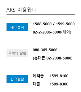 예적금 신규상담 고객센터 전화번호 : 1599-8100