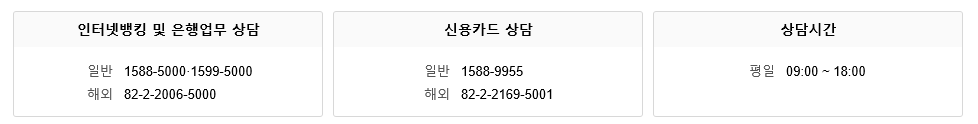 신용카드 상담 해외 전화번호 : 82-2-2169-5001