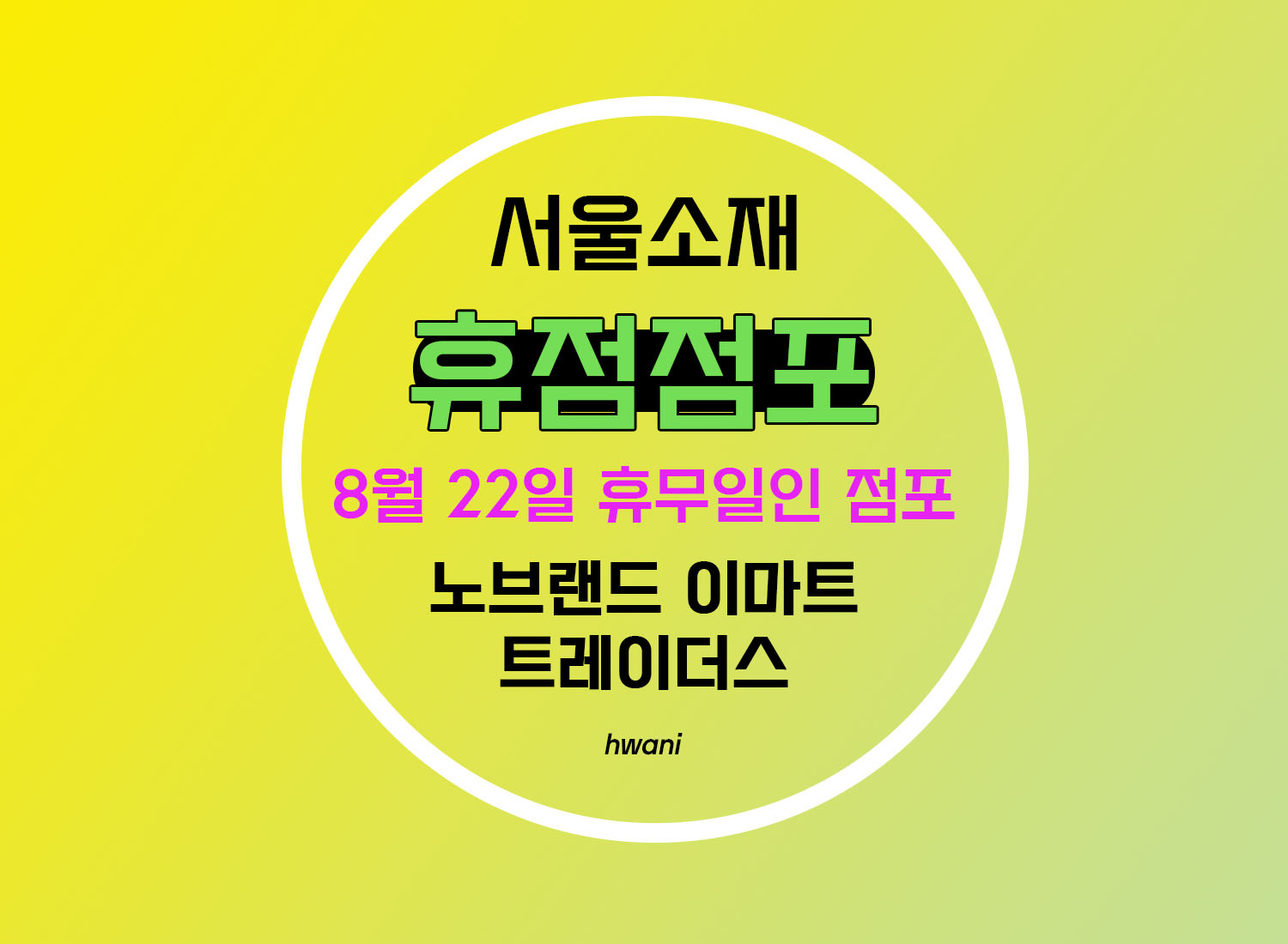 8월 둘째주 일요일인 8월 22일에 휴점일에 해당하는 서울의 노브랜드, 트레이더스, 이마트 점포명을 알아보겠습니다.
