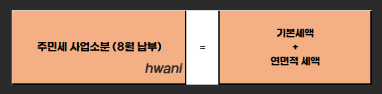 주민세 균등분 + 주민세 재산분이 → 주민세 개인분과 주민세 사업소분으로 구성이 달라졌습니다. 그래서 일반 개인이 아닌 사업장의 경우에는 7월, 8월로 따로 내던 주민세를 8월에 한꺼번에 납부할 수 있게 되었습니다! (개인은 원래 주민세 재산분을 납부하지 않음)
