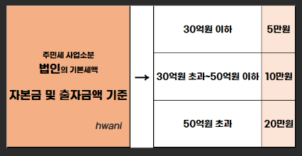 주민세 사업소분 중 법인 = 기본세액 (5만 원~20만 원, 3단계 구간) + 연면적 세액 330㎡ 초과 시 제곱미터당 250원