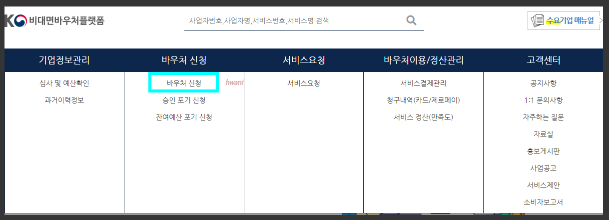 로그인 후에 바우처신청 메뉴로 들어간다.